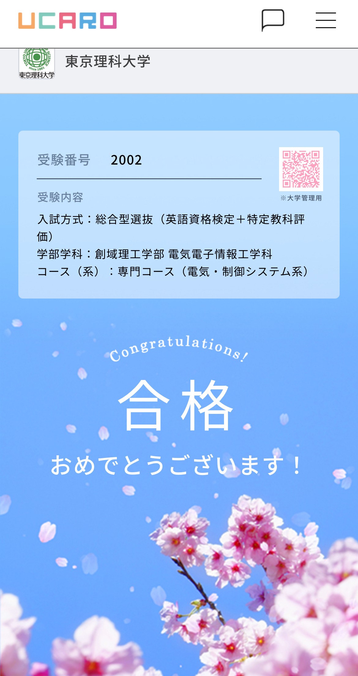 東京理科大学創域理工学部合格